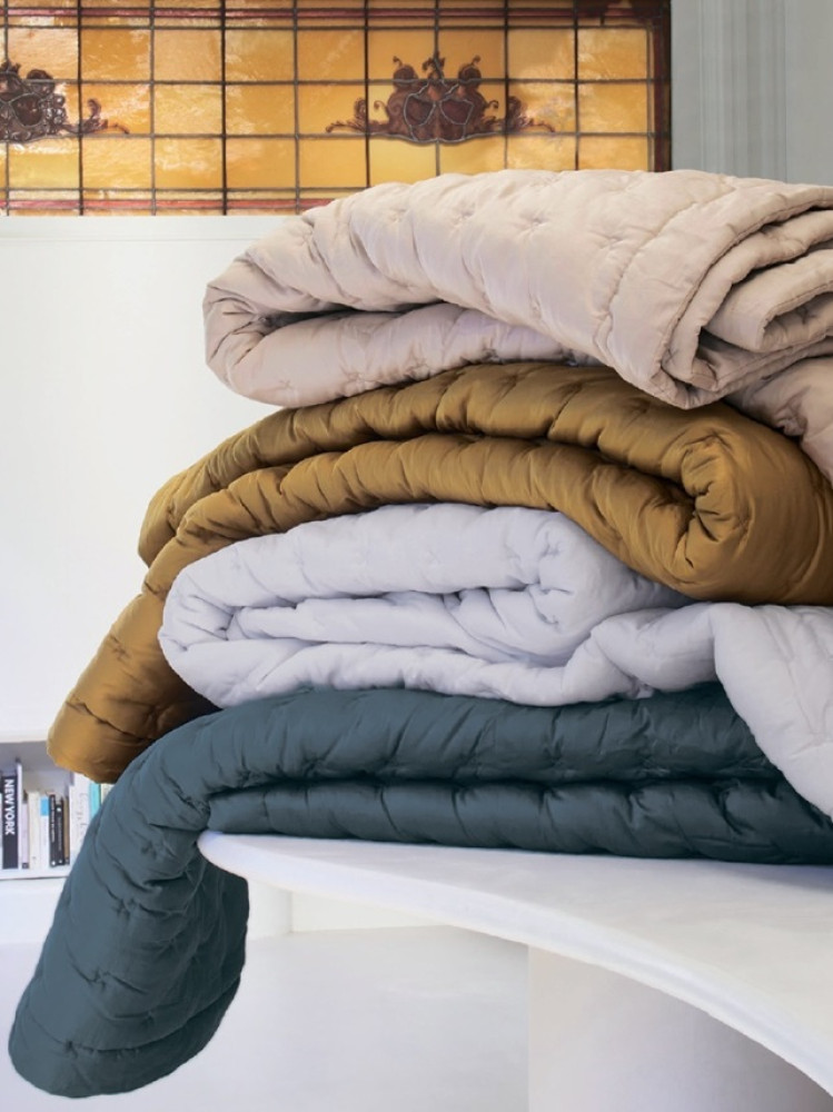 Стеганое покрывало ALCOVE от Blanc des vosges. из 100% длинноволокнистого гребенного хлопкового сатина, плотностью 120 нитей.. Изготовленное из исключительно мягкого хлопкового сатина, это покрывало воплощает в себе истинную роскошь.