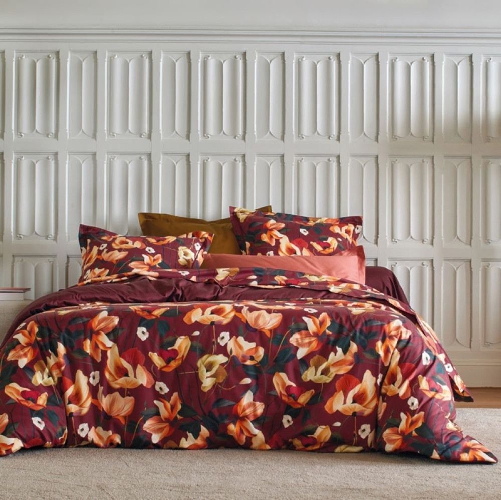 Стеганое покрывало из принтованного атласа Rhapsodie Grenat