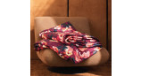 сторона: разноцветный цветочный принт на гранатово-фиолетовом фоне.