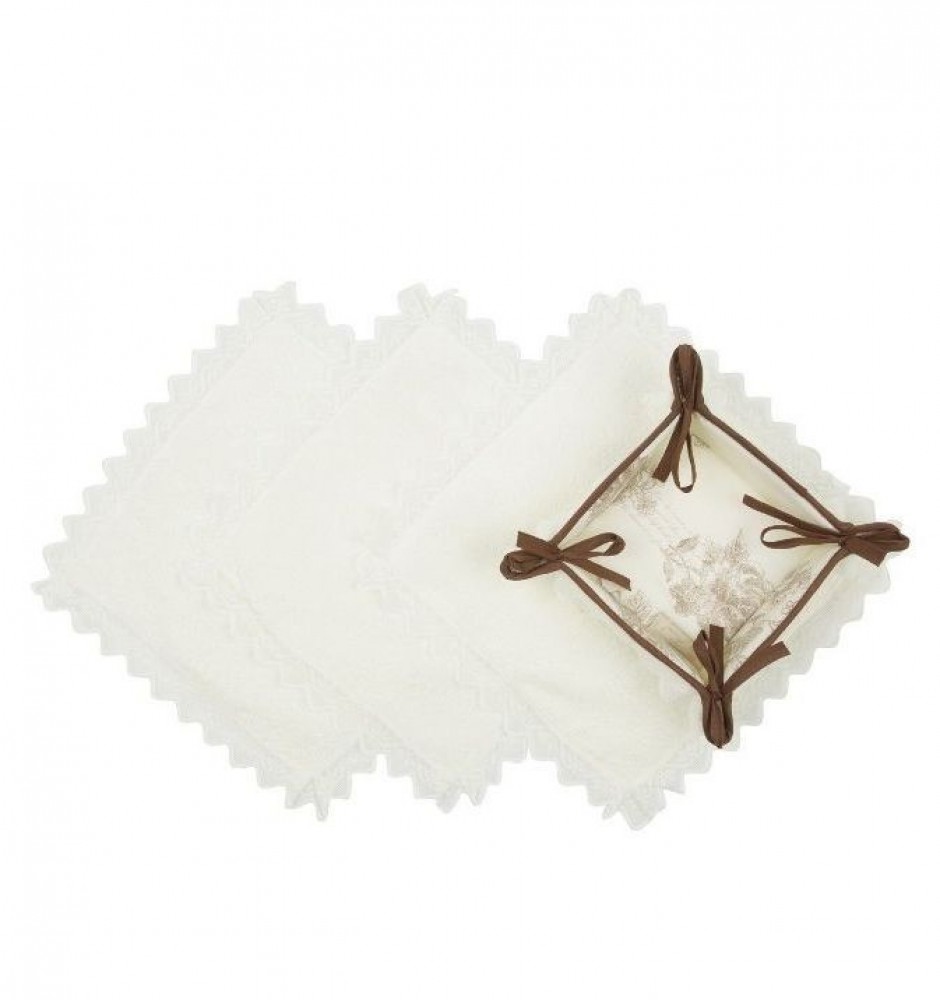 Красивая мягкая корзинка на завязках, декорированная кружевом, с набором 3 кружевные салфетки.
